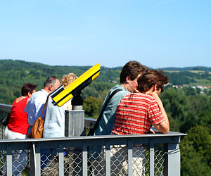 鉄骨の楼閣の上部には周囲に回廊が付いていて、誰でも板張りの床を歩いて一周することができる。楼閣の突端は清水の舞台みたいになっていて、おきまりのコイン式望遠鏡なんかもあって、観光のドイツ人たちが楽しそうに運河の行く先を眺めて何かを論じ合っていた。こんもりとした森を両岸にしたがえたハーフェル=オーデル運河は、ここから10数キロでオーデル川に達するはずで、その先はもうポーランドなのだ。(2005.8.31)