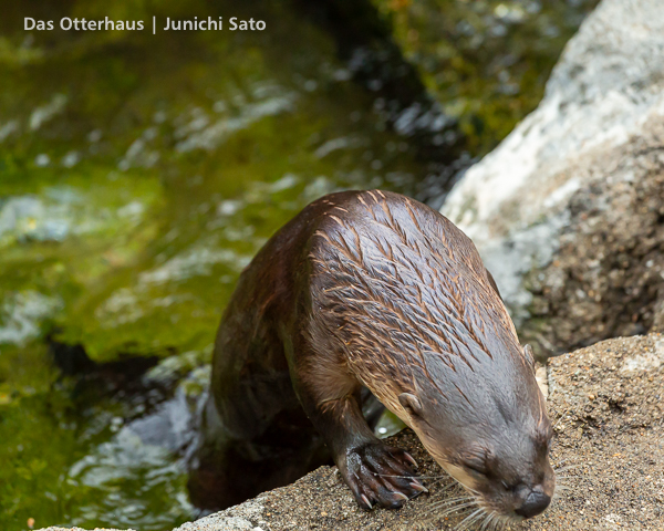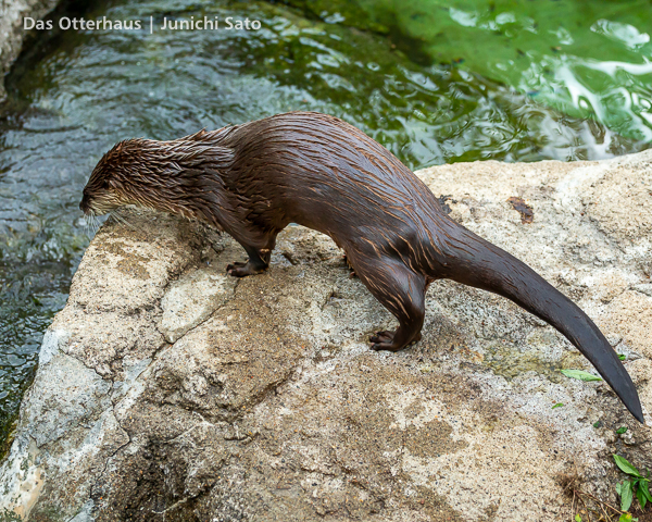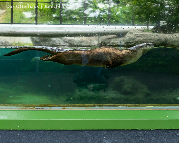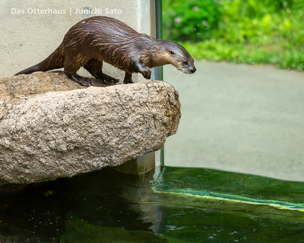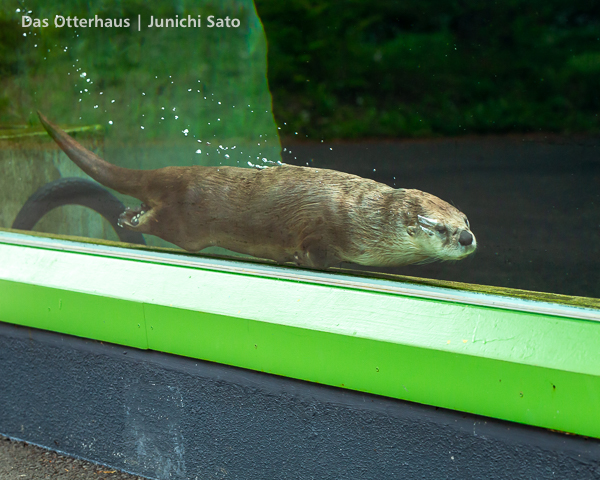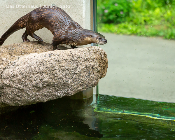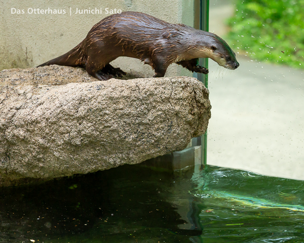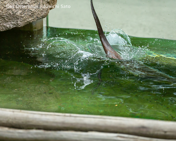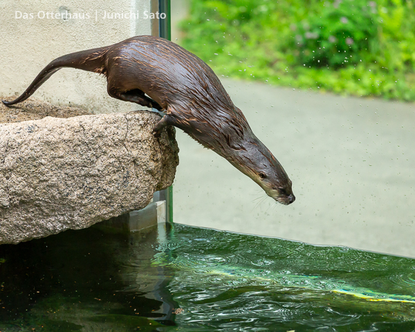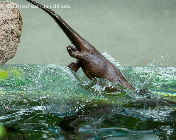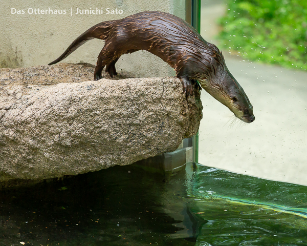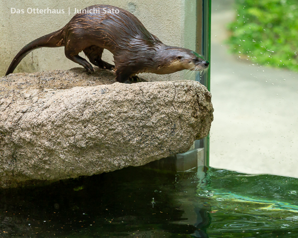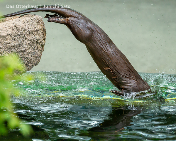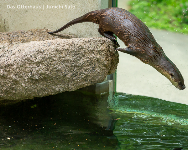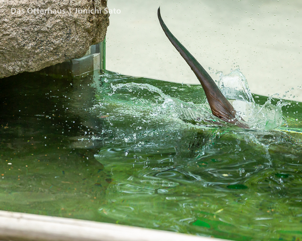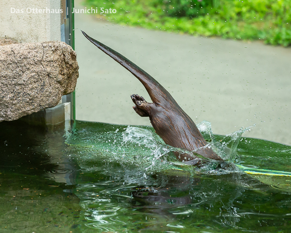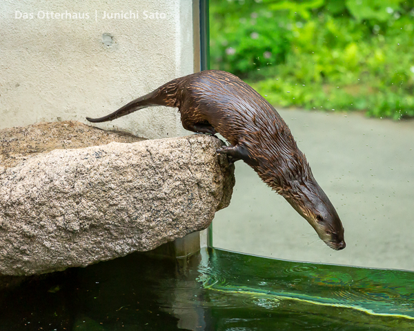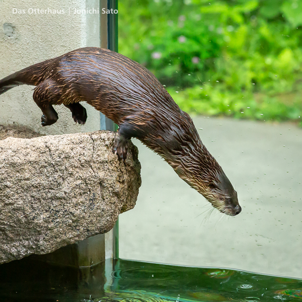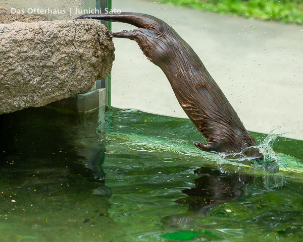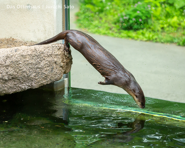 長らくお待たせしてしまったかもしれません。2025年6月撮影の盛岡市動物公園ZOOMOのカナダカワウソ、カエデさん。ダイブ直前、後脚キックの瞬間です。