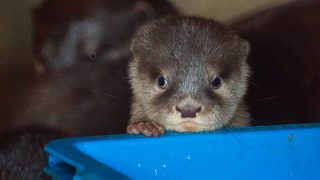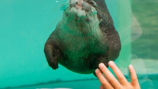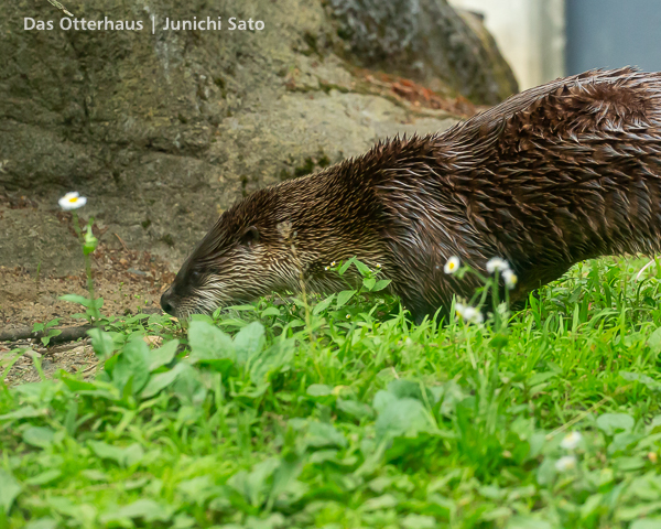 そういえば、カエデちゃんほど体毛の色が変化する他に個体を見たことがありません(十分に比較できるほど大量にカナダカワウソ見てないけど)。成長し切ってからは焦茶色が基本だったと思いますが、水に入ると結構明るい茶色なんですね。