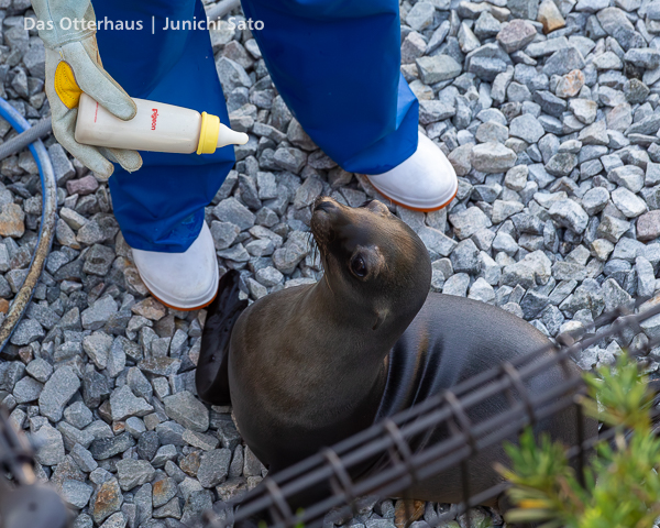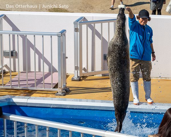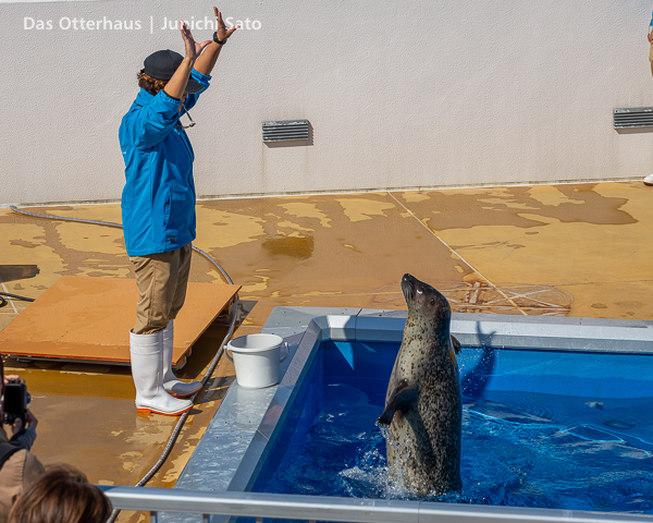 カワウソの前にゴマフアザラシのフィーディングタイムなんですが・・・