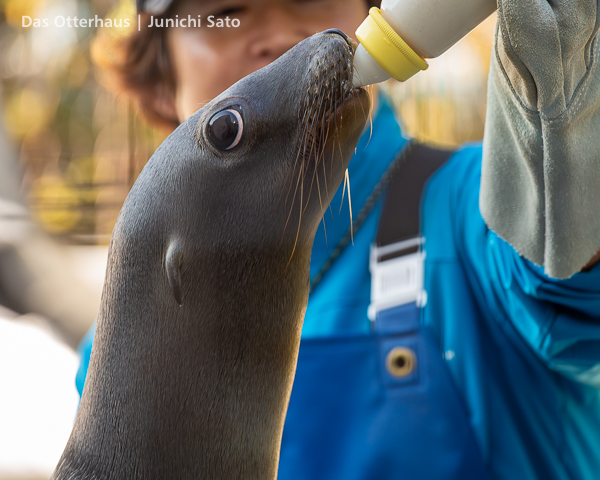 10月の晴れた日、最初のフィーディングタイムはアシカ。朝からお客さんがいっぱい集まって来ました。でも残念ながらこの位置からは見事に撮れません! どうやらアシカは引きでは撮れない仕様なんですな。