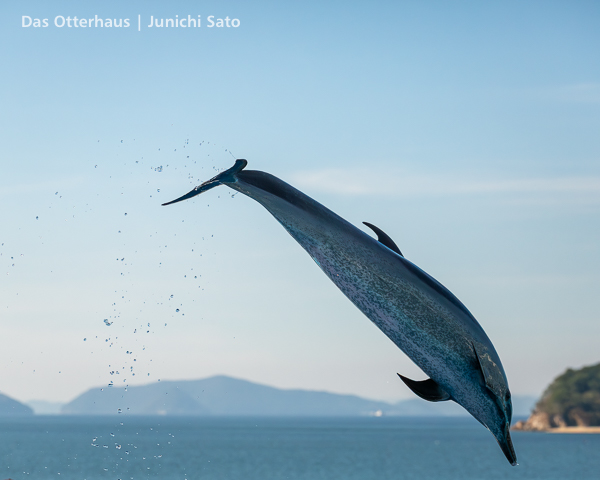 今回はマダライルカのまだらを強調して撮ってみました。それにしても心和む背景です。何時間でもぼーっと見てられる景色です。時折、島へ向かう小さいフェリーなども通ります。昔、そんなのに乗りまくってた時期があった。また乗りたくなってきた。