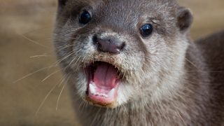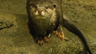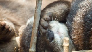 ハピアのアップ。一般にカワウソは乾いている時と濡れている時では人相(獺相)が変わるし、横顔で識別するのも難しいですね。鼻の模様も経年変化したりするので久々に会うと分からなくなったりする。