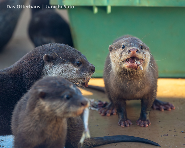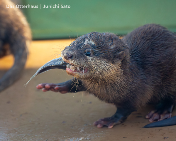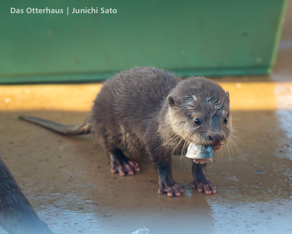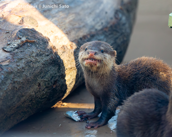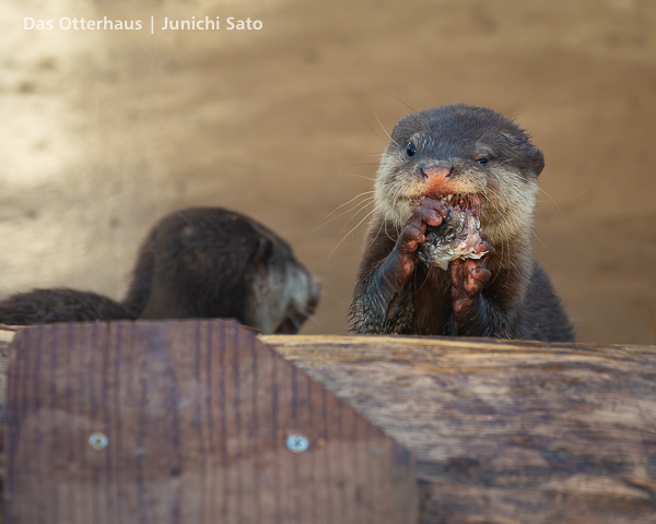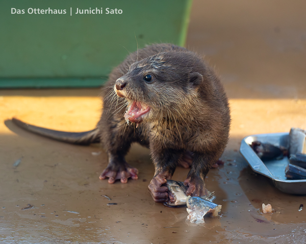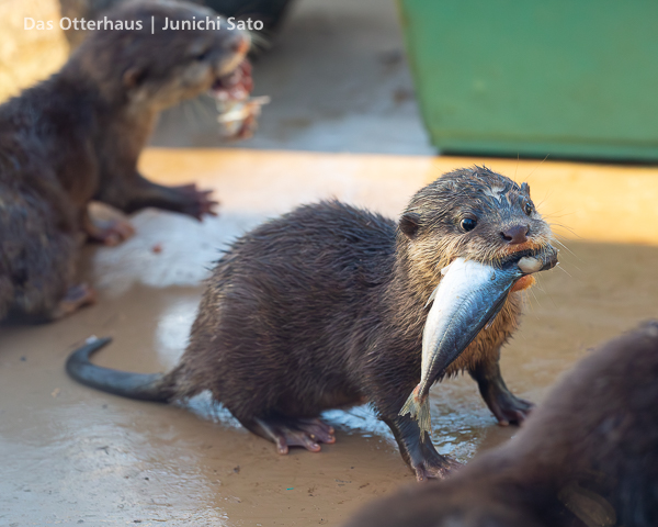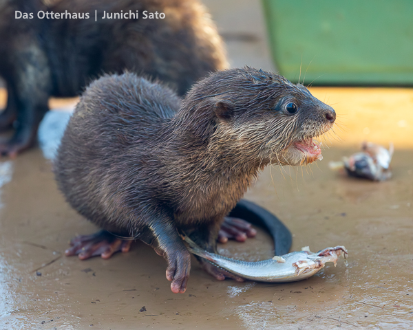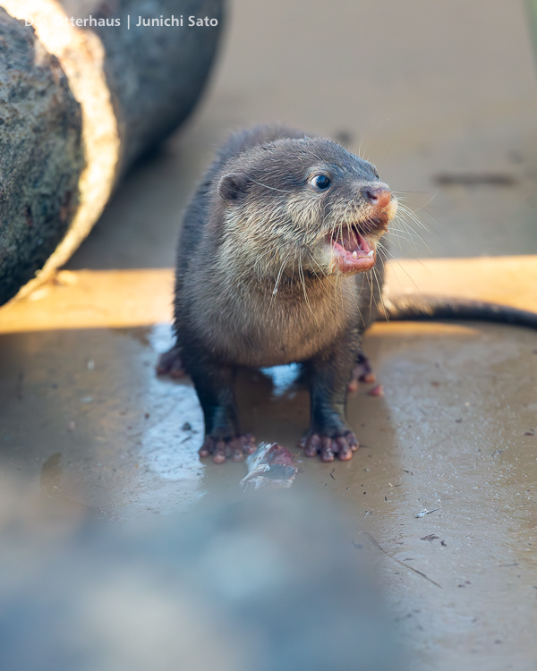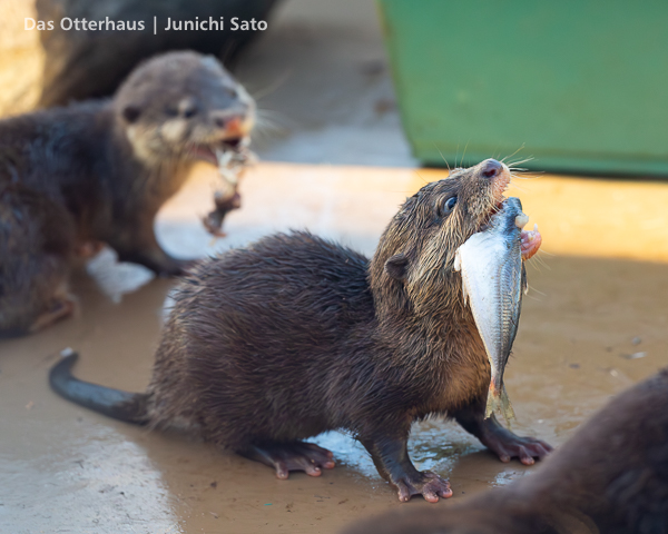 日立市かみね動物園のコツメカワウソが続きます。2025年12月撮影。ベビウソなのに、すでにこの豪快な食べっぷり・・・たまりません。