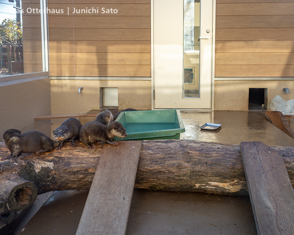 カワウソのフィーデイングはイベント告知に出てない日でも、カピバラの後に見られるようです。ちなみにこの日は14時過ぎでした。詳細は園のサイト等で確認してください。でも「当日その日の動物の体調や展示状況によって決定するため、ご来園予定日の実施予定など事前のお問い合わせにはお答えできかねますので、あらかじめご了承ください」とのことですので、基本的には行ってみないとわからないかもです。