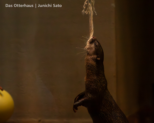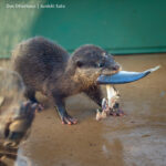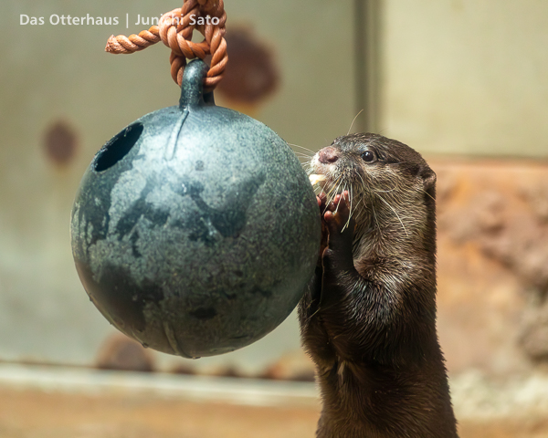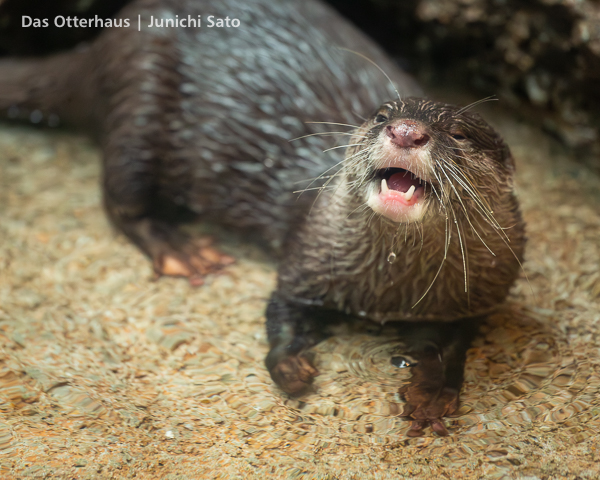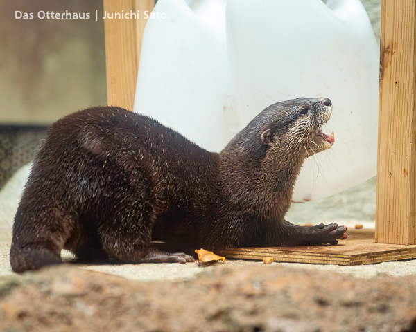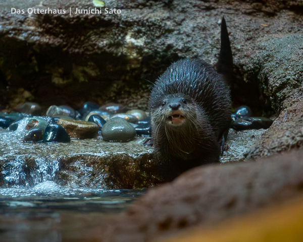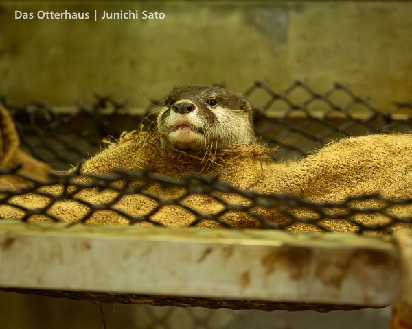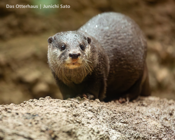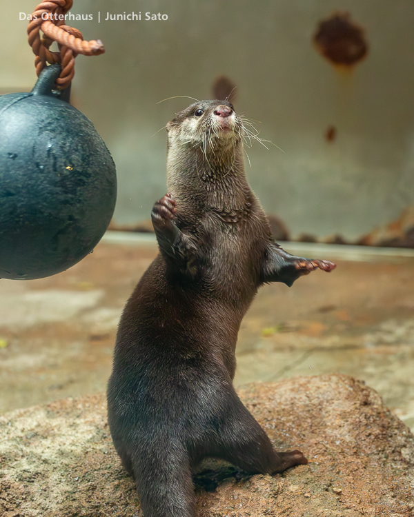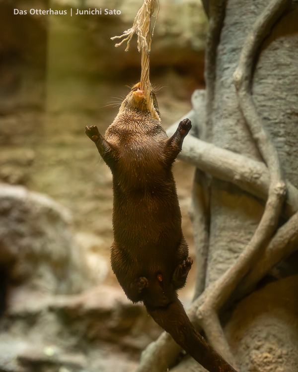 福岡市動植物園のコツメカワウソ、まお。2025年12月の撮影です。この写真だけ見ると、爆弾カワウソ娘(意味不明)ですね。