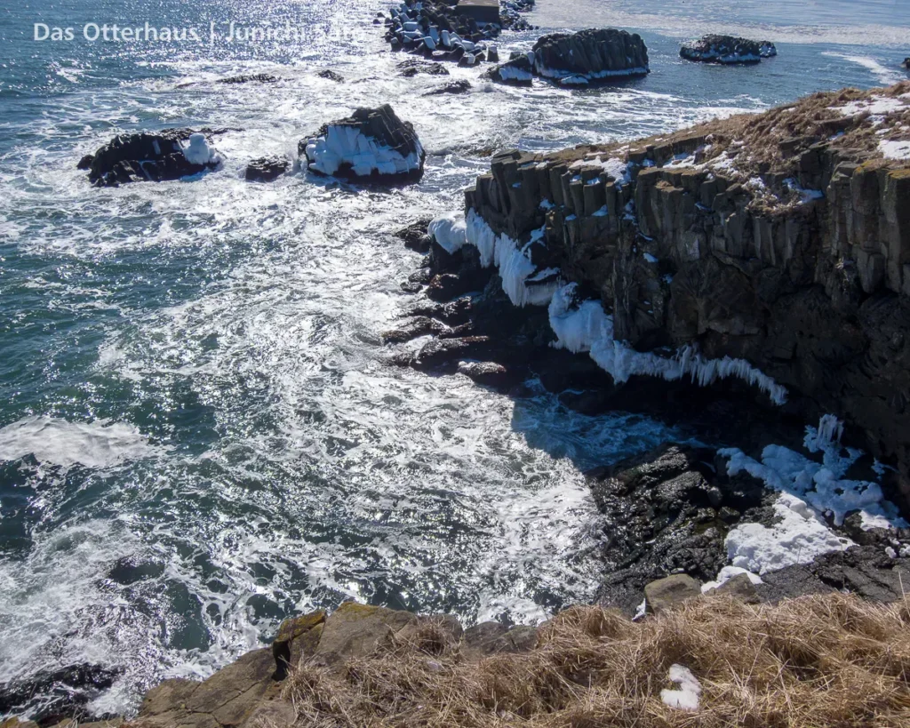 で、オオワシの飛ぶ空から振り返るとこんな風景が。実はここ、メジャーな鳥見のスポットなのです。岩の形が特徴的なので、分かる方にはすぐわかる、というような場所です。