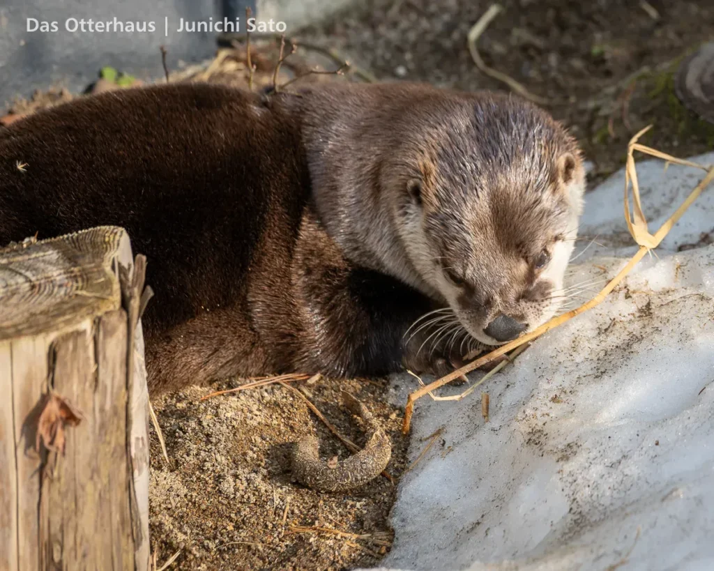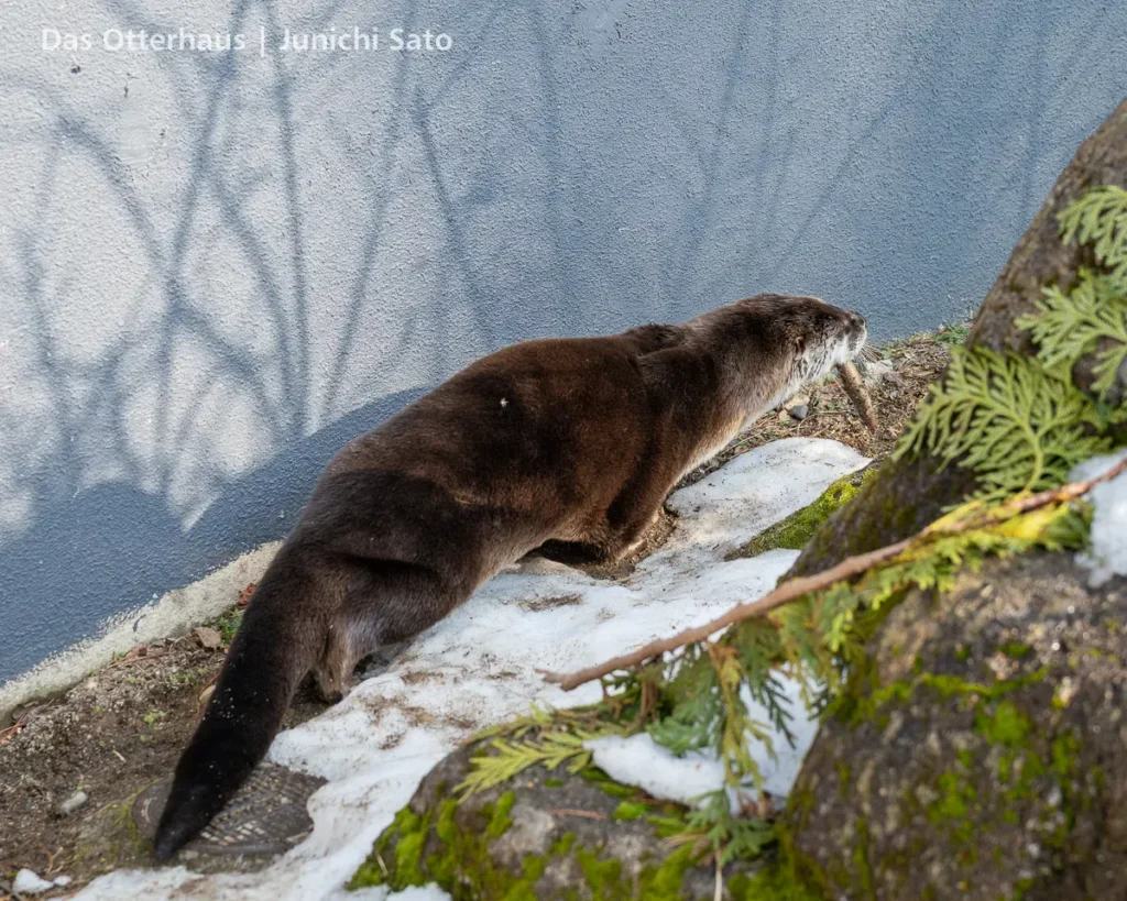 1月にがっつり積雪があったようで、園内にはまだ雪が残ってました。こちらビクトリアエリアはリニューアル以降、入口から直行すると、道順的には思いっきり逆走になってしまい、一般のお客さんからなんとな〜く微妙な目で見られるようになりました。カワウソ推しだけじゃなくて最近ではピューマ推しのお客さんも同じ穴のなんとやらですね。もちろん視線など全く意に介さず反対向きに歩いて無事到着。