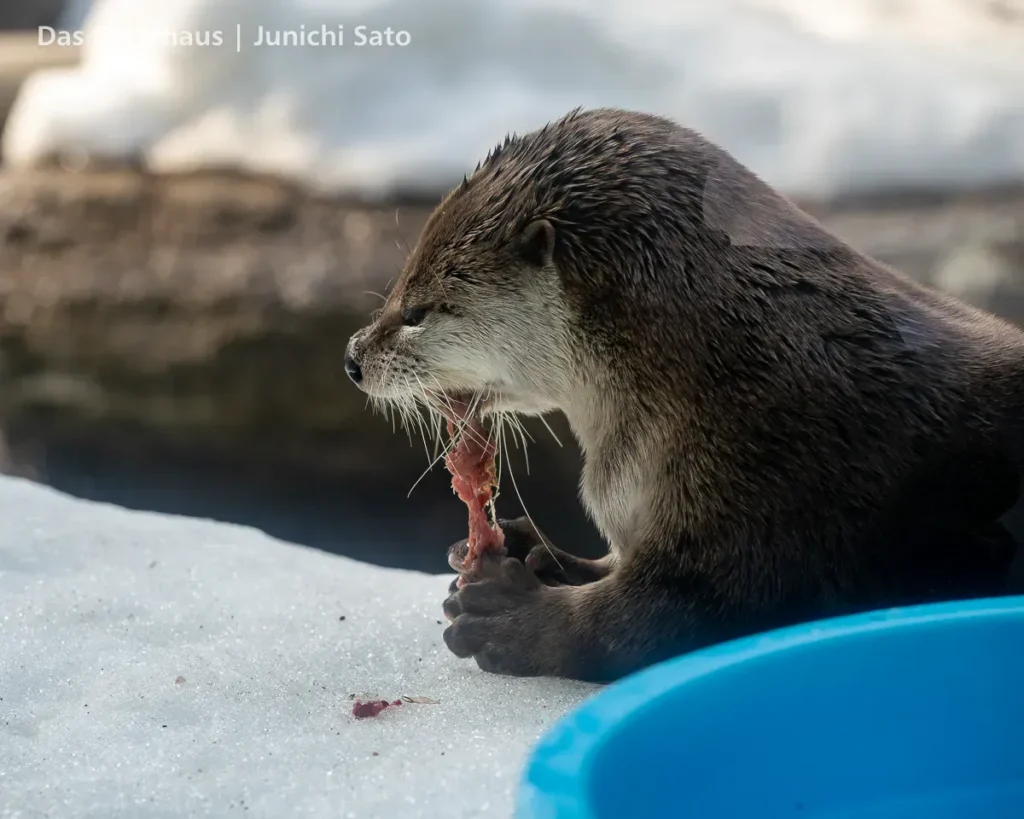 毎度おなじみ、盛岡市動物公園のカナダカワウソ、カエデさん。2026年2月中旬の撮影です。