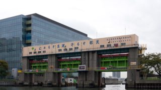 ひょっとして宴会後、電車の中でこらえ続けて辰巳駅。何とか電車を降りたものの、辰巳桜橋の真ん中へん、辰巳水門が見えた途端に安心し、急に熱いものが込み上げてきて、みたいな流れがあるのかもしれない。要するに辰巳水門を見ると、家に帰ったような気がしてほっとするのが正しい東雲ライフである。自分的にはそれはちょっとうらやましい気がする。水門にも「生命財産を守ります」って書いてあるし、東雲エリアの守護神だな、辰巳水門(実は東雲水門というのもあるのだが、今言っている東雲エリアとは離れた、とんちんかんな方角に立っている)。