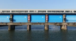 いやまて。こんなふうに全景を撮るとそれほどカッパっぽくなくて、なかなかいい水門じゃないか! つまりカッパはわたしの頭の中にいるらしい。気が知れないのは、実はわたしの頭の方なのだった。