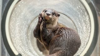 このカワウソの写真いまいちだな、と思ったのだが、よく見るとひじのところに生えているヒゲ(水中での流速検知用とか・・・ピトー管かw)がしっかり写っている良い写真だった。