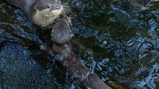 ユーラシアに比べると、コツメカワウソは茶色の黄みが強い感じ。これは同じくのいち動物公園所属のメコン。