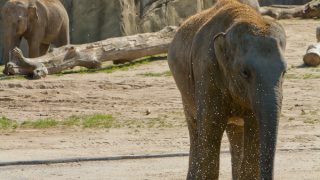 たろうさんも雪の中。アフリカゾウの放飼場は除雪してあります。