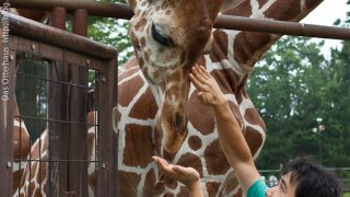 シタツンガのいるアフリカゾーンの奥。キリンたちにあいさつに行こうとしたら、あれ!
