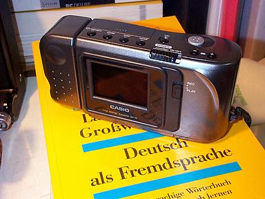 いま都合3台のデジタルカメラを使っているのだが、その中でも[Days]プロジェクト(http://jsato.org/days/)のような日常の極みを捕らえるのに最適なのが、このCASIO QV-10であるように思っている。もう4年も前の、61380画素なんていう今では超々低解像度のデジタルカメラである。通常の感覚から言ったらこれはもう完全にお払い箱だろう。でも去年の暮れに新古品を見つけて買ったわたしは毎日持ち歩いて淡々と日付を撮るのに使っている。そもそも現在のデジタルカメラのフォーマットというかスタイリングというか、標準的なデジタルカメラの在り方のようなものを決定的にしたのがQV-10である。物理的な軽さは言うまでもなく、レスポンスの悪い今のメガピクセル機に比べて実にスカスカっと動く感じが今でもとっても新鮮である。そういえば発売直後に新しモノ好きのわたしの師匠が早速購入したのを触らせてもらったことを思い出した。何だか「シャッターを切るという行為」の敷居が思いっきり下がった感覚がしたことがちょっとした衝撃だった。どんなにフィルムを湯水のように使えるシチュエーションであっても、どんなに軽いシャッター軽いモータードライヴを備えているカメラであってもこうはシャッターが軽くはない。フィルムを使うカメラでは絶対に考えられない「シャッターを切るという行為」自体の軽さ。これは同じ軽さという尺度でも次元の違う尺度における軽さなのだと思った。さらに光学ファインダがない、という構成も新鮮だった。QV-10以降の機種がおしなべて光学ファインダを備えるようになったという現象は、単純に電池の消費を押さえるためと、LCDモニタの追従性が良くないことを従来型の技術でフォローすることのためだけを目的にしている。これはある種の退行と言ってもよいのだろう。電子的に記録されるものはやはり電子的に同時モニタされるべきなのは言うまでもない。撮ったつもりのものと実際に撮れたものが違っているのはモニタリングではないからだ。閑話休題。それにしても今QV-10を使うことは、カメラとは所詮は画像入力装置でしかないというドライ&クールな割り切りを再確認することに通じる。これは毎日、日付を撮るという行為が、生きるということは所詮、与えられた時間を消費して果てることでしかないことを毎日再認識することに通じるのと、ちょうどよいマッチングを構成してくれているように思う。