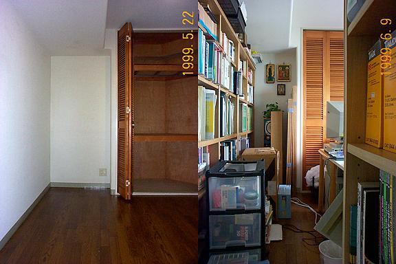 ●部屋という空間。面白いものだなとつくづく思う。人によって部屋の機能はいろいろ違っていてよいのだが、わたしの部屋を考えてみると、内部記憶装置(つまり脳みそ)の拡張と、感覚器官(つまり眼や耳)の延長と、機械的な器官(つまり手足)の延長、がみな渾然一体となった物質のカタマリ、というようなものであると言えるようだ。何のことはない、肥大した自分の体が自分の部屋だった、というわけだ。自分の体の拡張の中にいることが心地よいということは、自己完結的な、マスターベーション的な事態であるなあなどと考えてたら、ちょっと気持ち悪くなってきた。